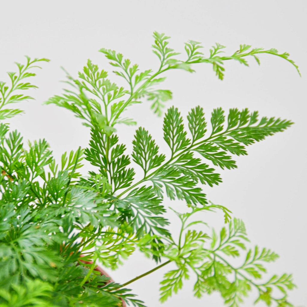 Description: Native to the Fiji Islands of Oceania, the Rabbit's Foot fern has many intricate uniquely shaped leaves that are lightweight and soft. It gets its name from the "furry" rhizomes that grow out of the soil and down the sides of its pot. The delicate leaves make caring for a Rabbit's foot fern more difficult than other ferns. It prefers indirect sunlight and constantly moist soil. Regularly mist or shower the leaves to prevent them from drying out. It can grow up to 3-4 ft, and is popular in hanging displays to show the furry rhizomes.