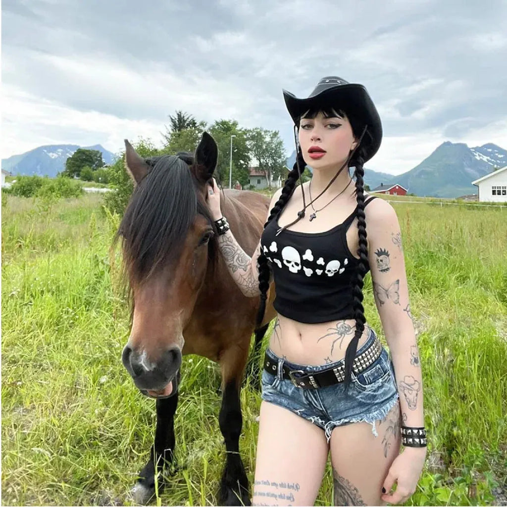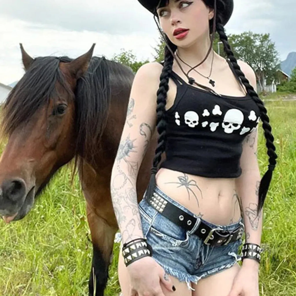 - Style: Embrace the Y2K aesthetic with this edgy skull print cami.