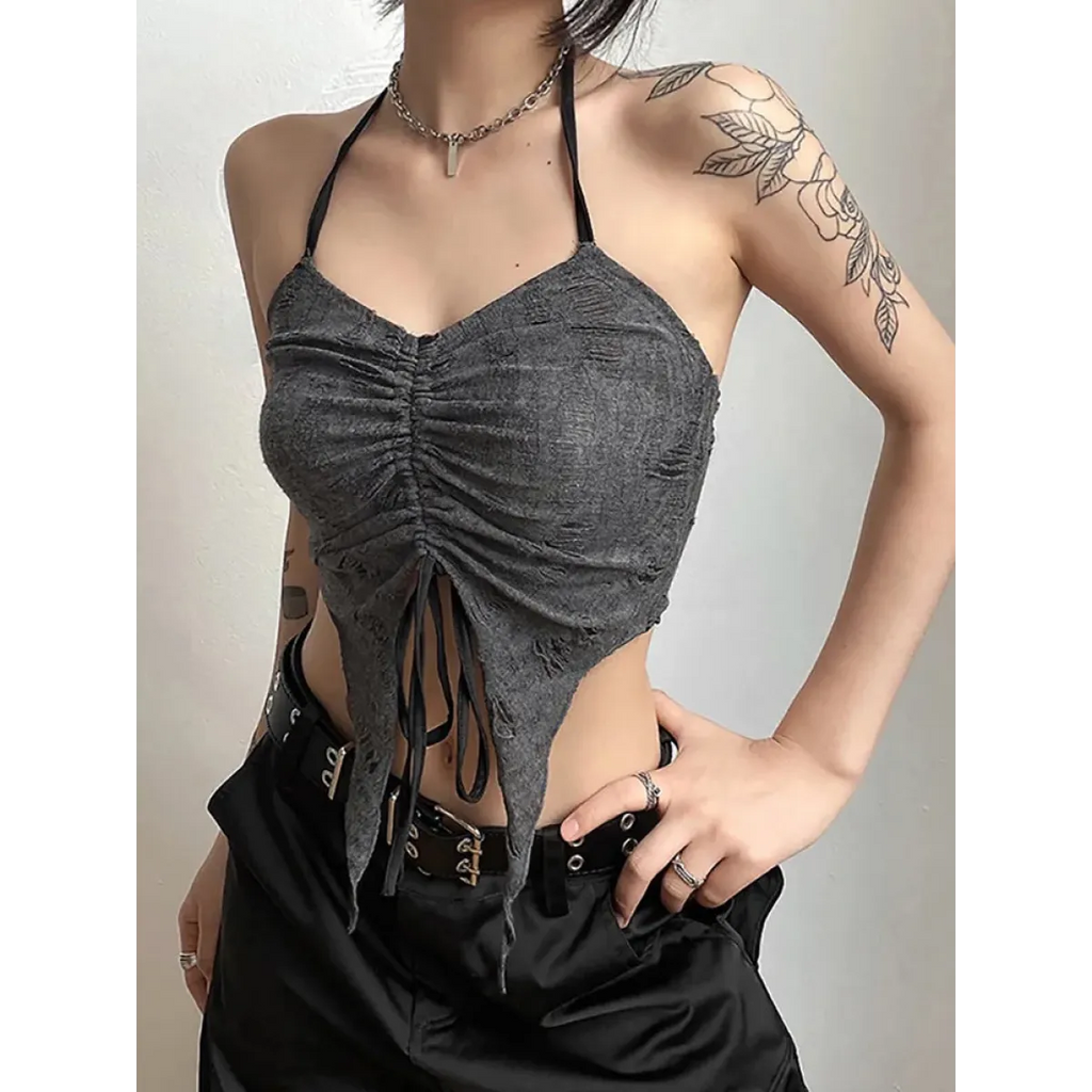 Pair this 2-piece set with some chunky platform boots and layered silver necklaces for a look that's both mystical and edgy. Add a dark lip for that extra gothic flair.