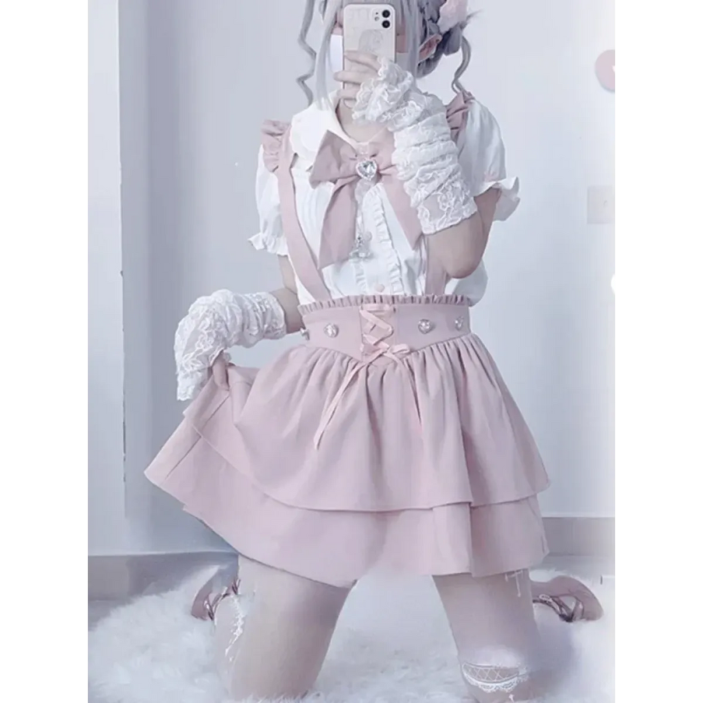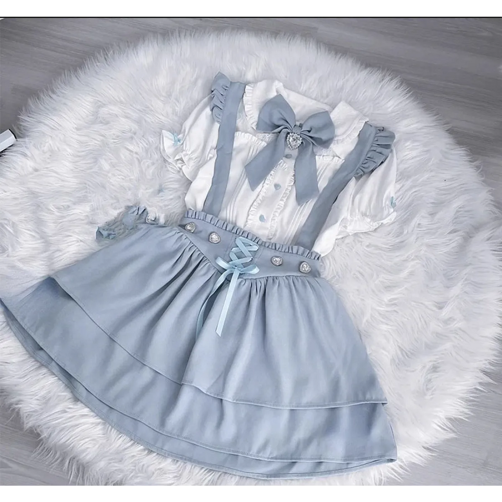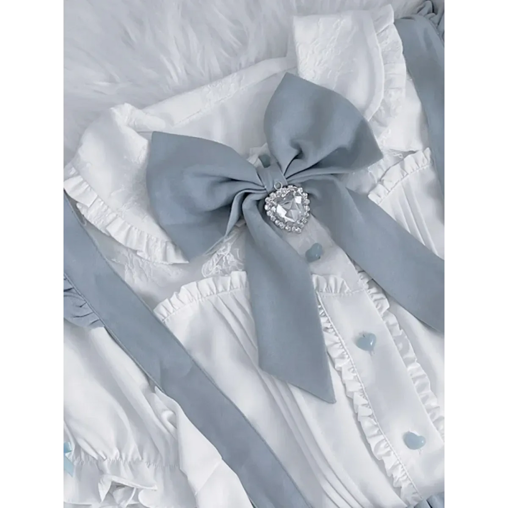 This sweet blouse is the definition of Fairy Kei charm, with its soft puff sleeves, delicate lace trim, and oversized bow that ties the whole look together. Whether you're dressing up for a J-fashion photoshoot or just adding whimsy to your daily wardrobe, this blouse is a must-have.