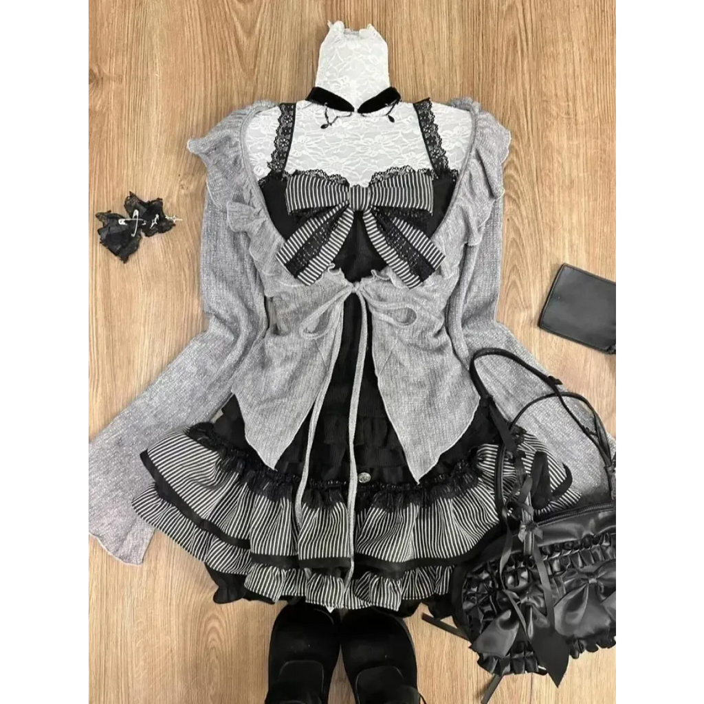 Step into a world of sweetness with our delightful Sweet Lolita 3-Piece Set! This charming ensemble includes a lace-up cardigan, a whimsical strapless top, and a flowing skirt, all designed to make you feel like a magical princess. Perfect for spring and summer, the pastel hues and elegant lace details will have you twirling with joy. Only at Kawaii Stop, this set is your ticket to a fairytale fashion adventure!