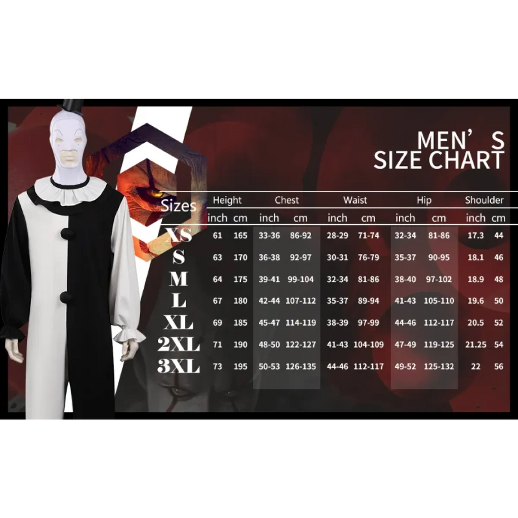 - Complete Set: Includes a detailed jumpsuit and Art the Clown headgear.