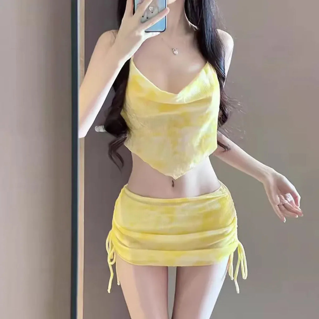 The Tie Dye Halter Bikini Set – Kawaii 3pc Swimsuit with Mini Skirt is basically your warm-weather glow-up in outfit form. It’s playful, pastel, and perfect for girls who like their swimwear with a side of extra. Whether you’re headed to a pastel picnic, splash party, or just wanna feel cute on vacay, this 3pc set brings the magic. Need styling ideas or fit help? Slide into our DMs anytime, babe