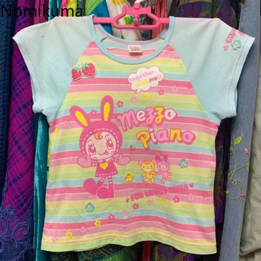 Channel nostalgic vibes with this Japanese Y2K-inspired striped crop top, designed to keep you looking effortlessly stylish and cute this summer! Featuring soft, breathable fabric and a flattering cropped fit, this tee is perfect for any casual outing, lazy day hangouts, or showing off your unique kawaii flair. Its bold stripes and trendy cut will make you stand out while keeping it fun and playful.