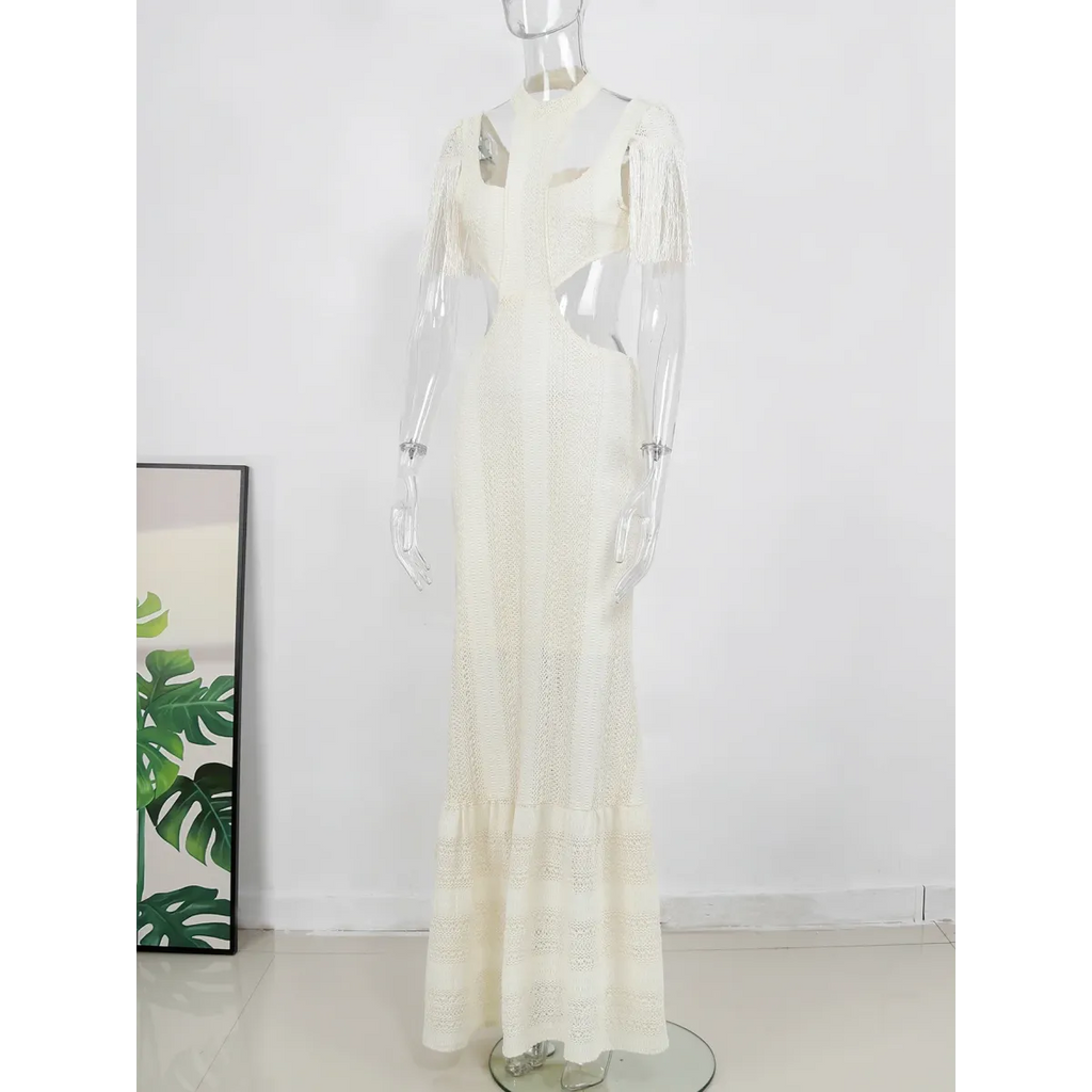 🌸 Introducing: White Lace Turtleneck Dress - Elevate Your Elegance with a Touch of Romance! Indulge in the allure of this stunning dress, featuring intricate lace detailing and tassel sleeves for a captivating look.