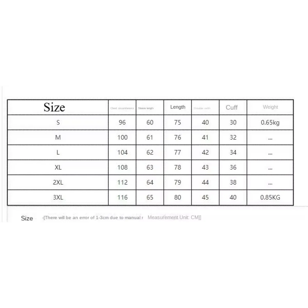 Size | Sleeve Length (cm/inch) | Length (cm/inch) |