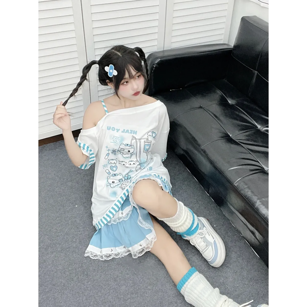 Pair this Y2K-inspired t-shirt with baggy jeans or pleated skirts for the ultimate Harajuku streetwear vibe. Add platform sneakers or chunky boots and accessorize with a bucket hat or chain necklace to complete the look.