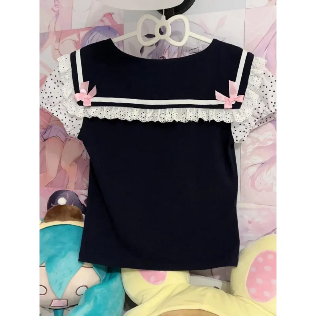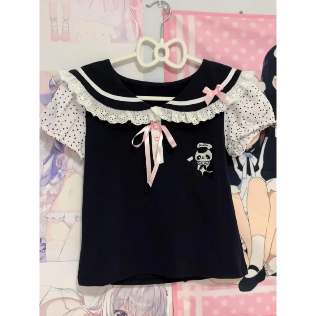 🌸 Introducing the Y2K Lace T-shirt: Kawaii Cartoon Embroidery Graphic Tee 🌸