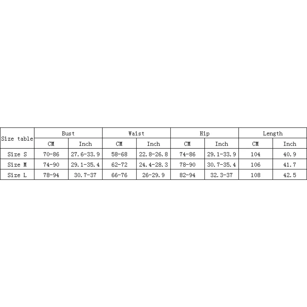 Size | Waist (cm/inch) | Hip (cm/inch) | Length (cm/inch) |