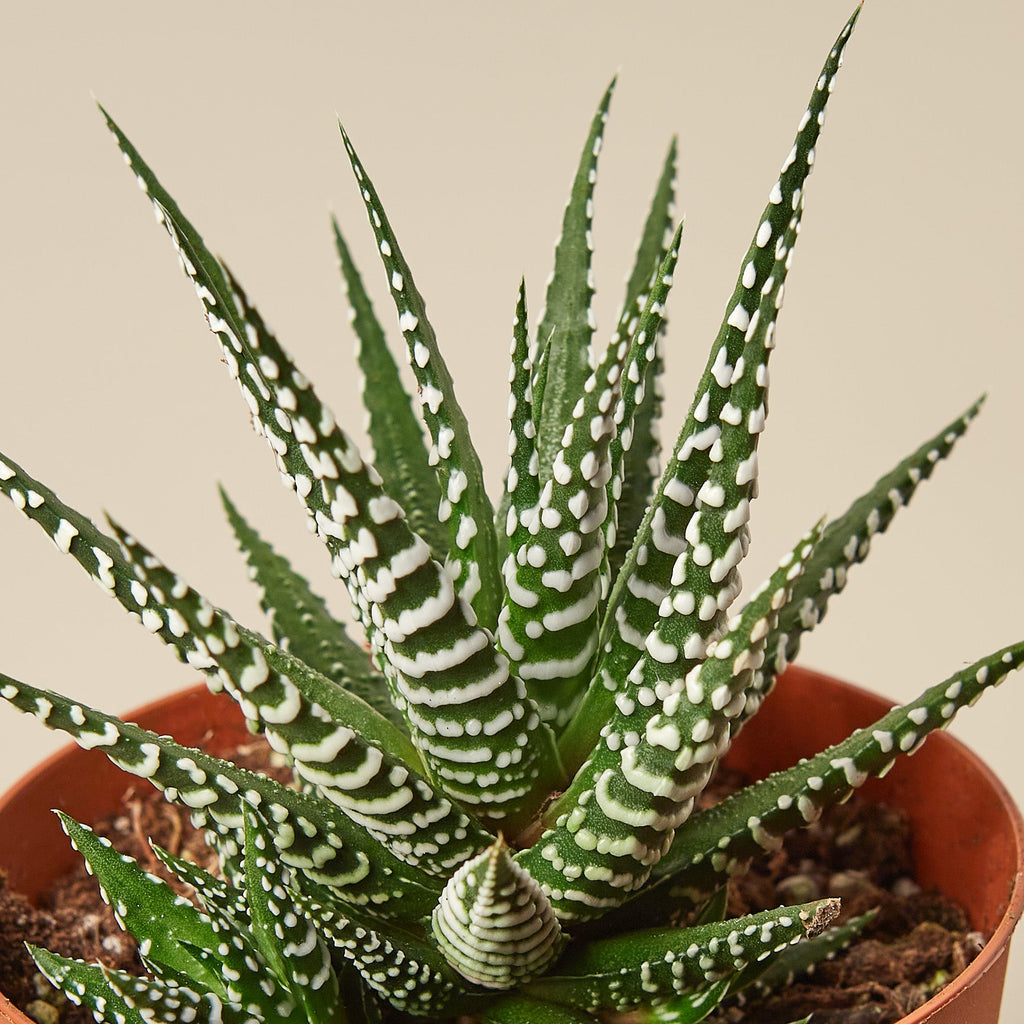 - Description: This remarkable succulent, characterized by its strikingly striped, zebra-like leaves, is a true natural wonder. Its compact size makes it perfect for both indoor and outdoor settings, and its low-maintenance nature makes it an ideal choice for beginners and seasoned gardeners alike. The Haworthia Zebra thrives in bright, indirect sunlight and well-draining soil, making it easy to care for. Its unique, architectural appearance adds an artistic touch to any space, whether you place it on a sunny windowsill, in a terrarium, or as part of a succulent garden. With its timeless beauty and enduring charm, the Haworthia Zebra Succulent is sure to be a conversation starter and a cherished addition to your greenery collection.
